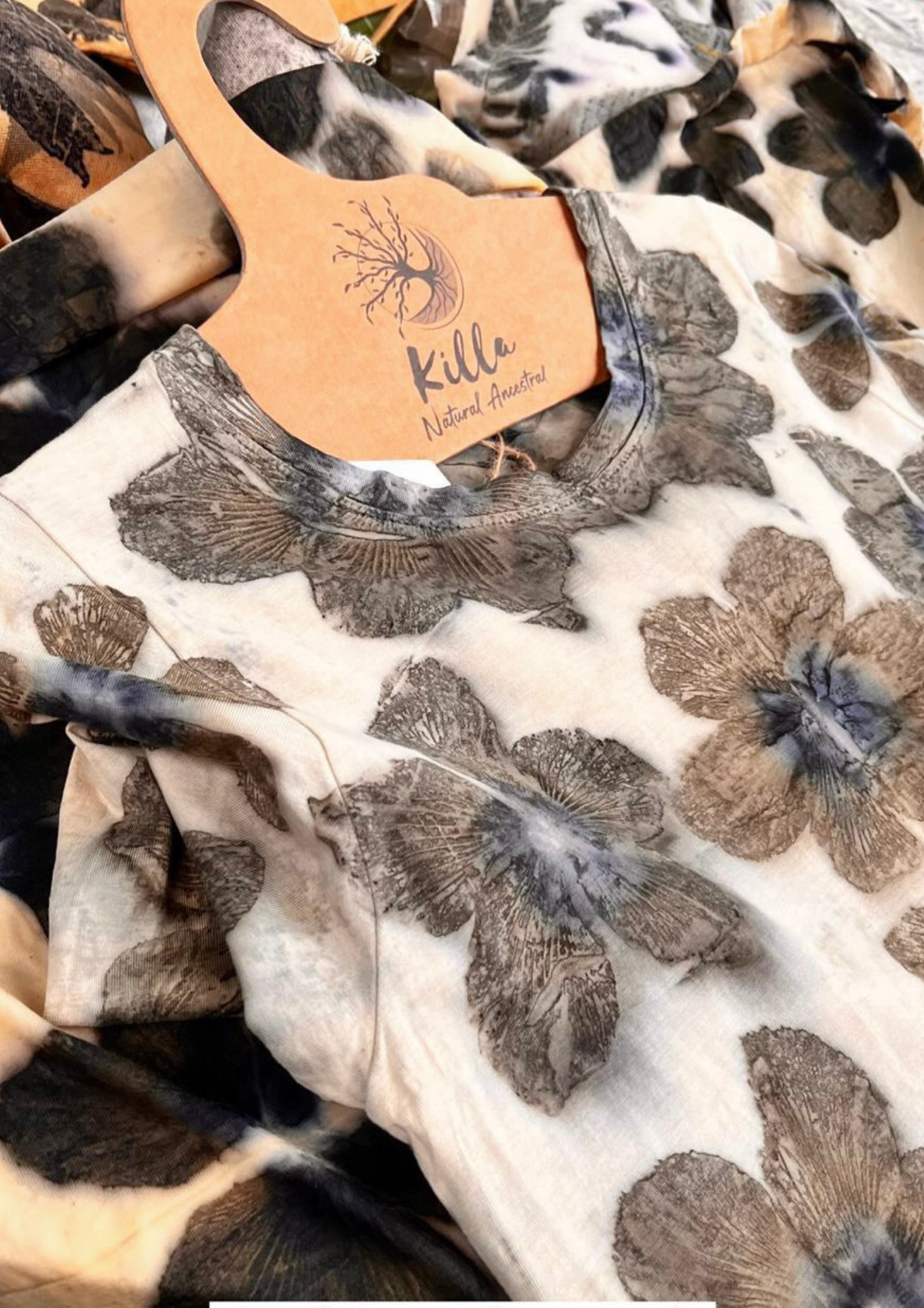 Women's Ecoprint Dress - Bohemian Sustainable Fashion Piece with Eco-Friendly Dye and Pockets
